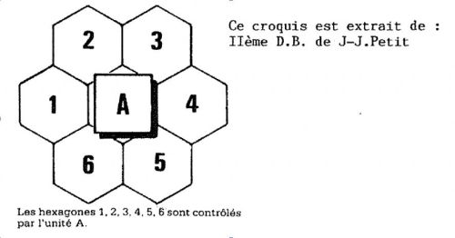 Le concept de Zone de Contrôle est propre au jeu de simulation historique et à nul autre jeu. Il s’agit de simuler l’effet qu’une unité ennemie a sur les unités adverses. On définit une zone de 6 cases autour de chaque unité combattante qui a un effet sur le mouvement des unités adverses, ou sur leur combat ou même leurs aptitudes particulières.